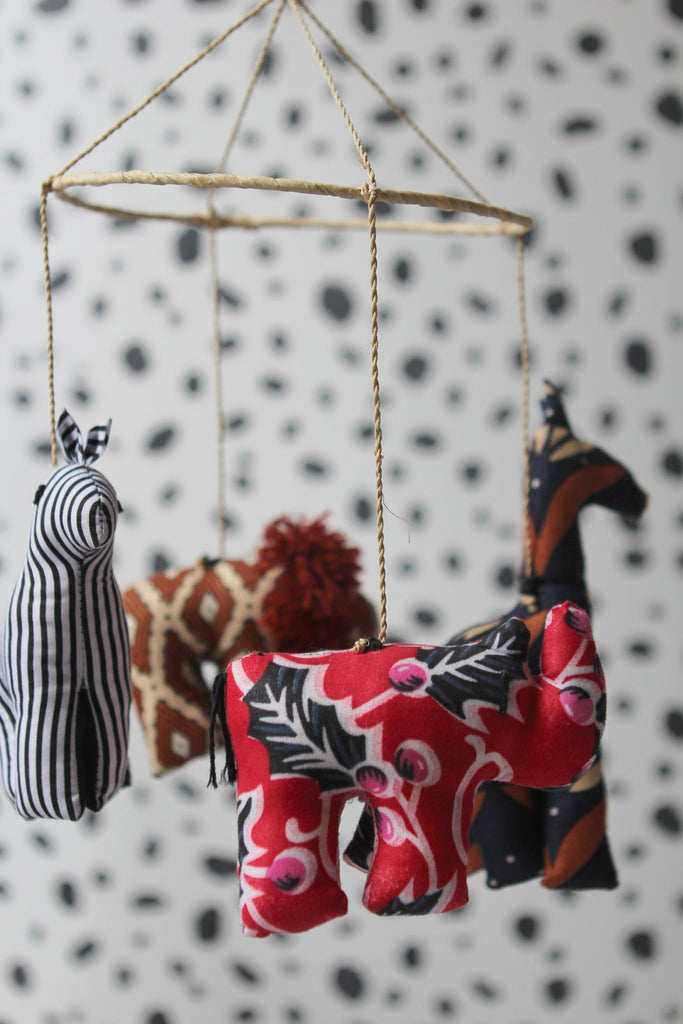 Each animal is handmade using different African fabrics before being threaded onto natural fibre string, then hung on a sturdy natural fibre covered wire circle - resulting in no two mobiles being exactly alike. Who wouldn't love one of these to brighten up their space, all the while knowing that each purchase is supporting communities in Africa?