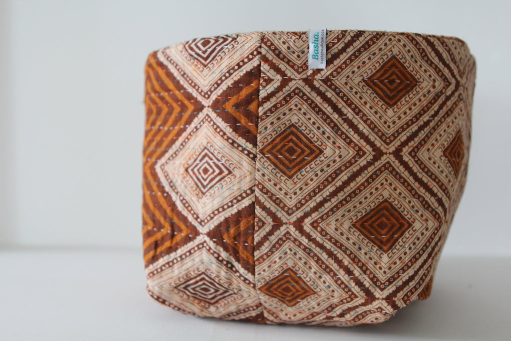 Burlap & Sari Square Basket - Brown Diamond