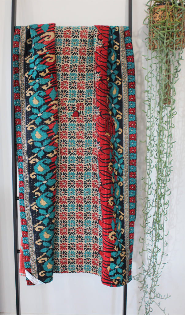 This beautiful handmade throw is made in Bangladesh from recycled sari cloth by a woman finding a way out of slavery. Perfect for keeping you warm on a chilly night, covering your beds, and decorating your home.