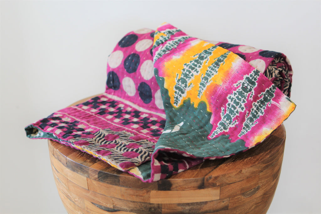 This beautiful handmade throw is made in Bangladesh from recycled sari cloth by a woman finding a way out of slavery. Perfect for keeping you warm on a chilly night, covering your beds, and decorating your home.