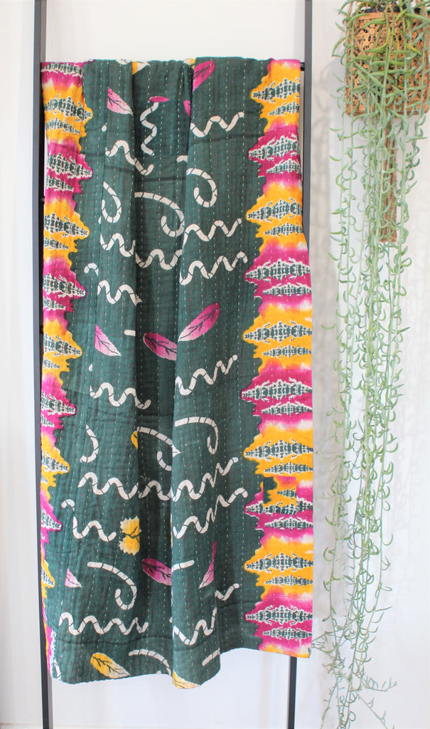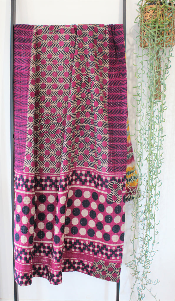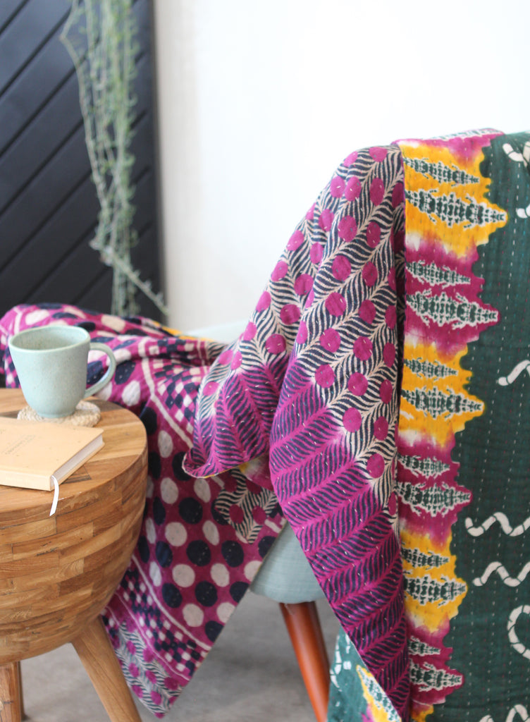 Sari Kantha Large Throw - Purple & Green
