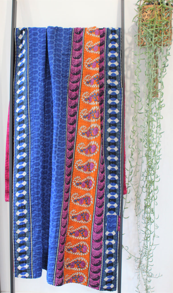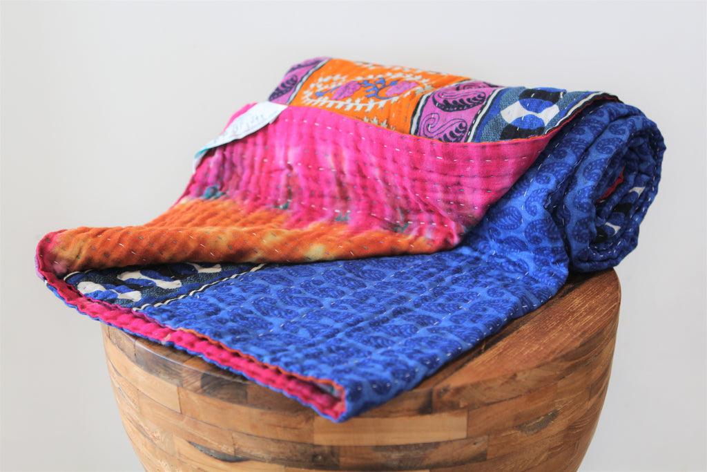 This beautiful handmade throw is made in Bangladesh from recycled sari cloth by a woman finding a way out of slavery. Perfect for keeping you warm on a chilly night, covering your beds, and decorating your home.