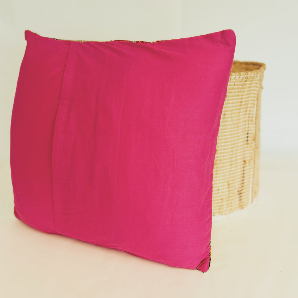 Add colour and character to your home with this beautiful handcrafted cushion cover, made from recycled fabrics and finished with traditional hand-sewn Kantha stitching. Each piece is completely unique, celebrating the natural variations and charm of repurposed textiles.