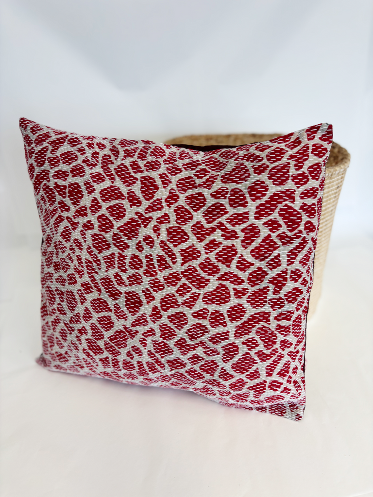 Kantha Stitch Cushion Cover - Red Animal Print (Pink)