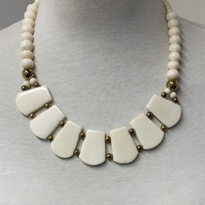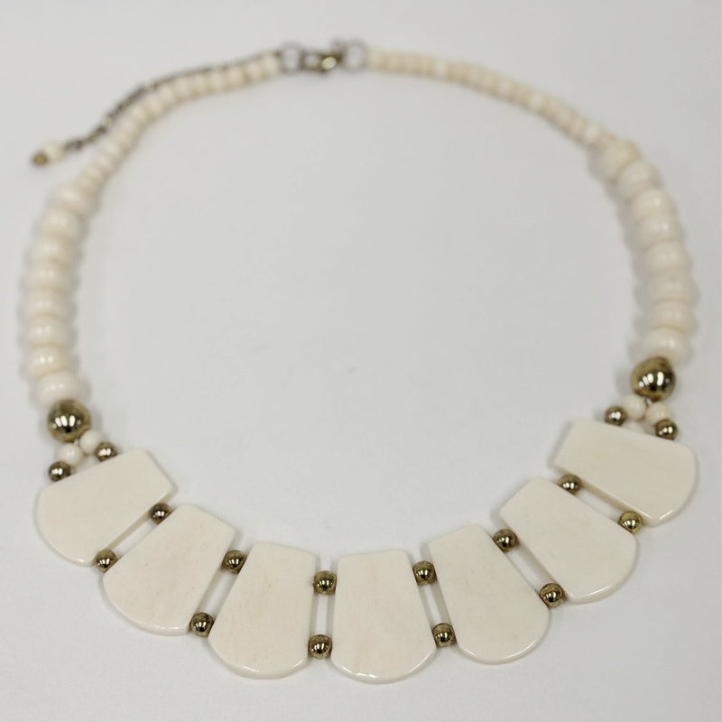 High-trend look at value price! Sophisticated yet earthy necklace crafted from ethically sourced bone and cotton. Clear artisanal detail give these necklaces authentic appeal. Adjustable length. Exclusive design.